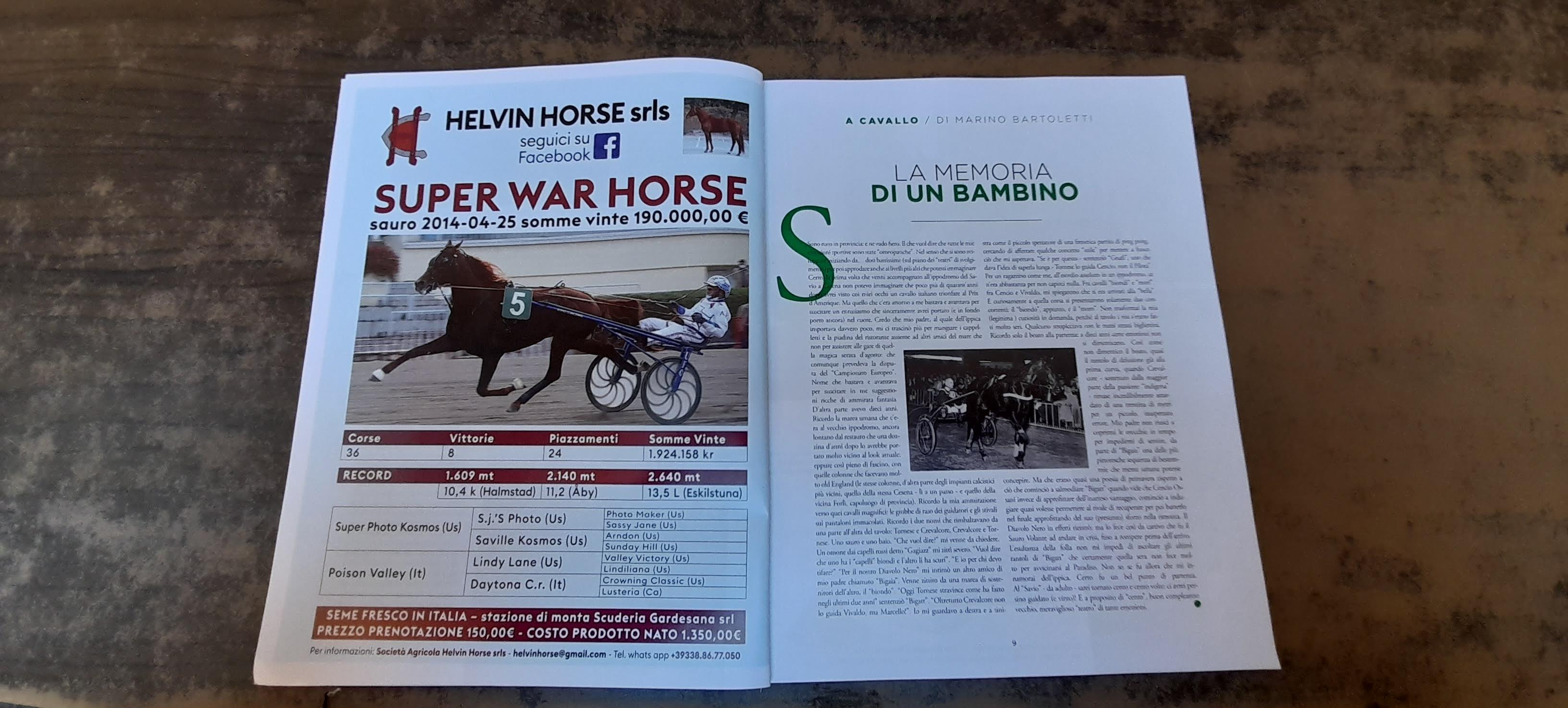 Med en italiensk uppfödare men registrerad i Sverige hade Super War Horse en kort men utmärkt karriär, med 8 segrar, 13 andra och 4 tredjeplatser på 36 körda lopp (5 i Italien, med 3 segrar, 1 andra och 1 tredje).